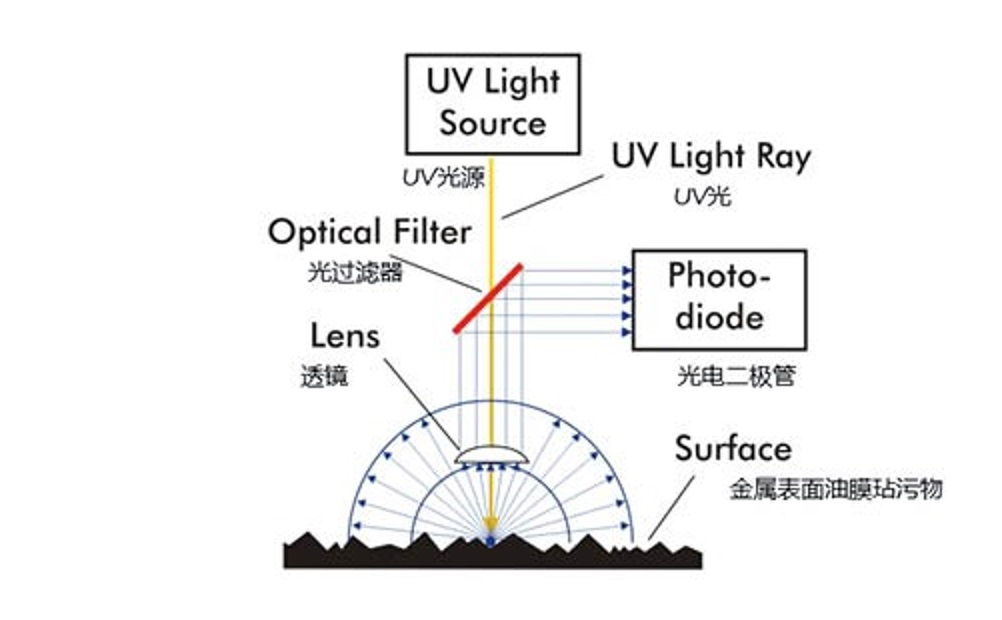 对于普遍清洁工艺的污染物,析塔SITA表面清洁度仪的测试参数设计恰当。由于有机物被UV光激发后具有很强的自体荧光特性,因此该仪器能检测出油脂和残余表面活性剂、润滑油等有机污染物。此外,它也可监测防腐剂或粘胶剂等油膜层的厚度。